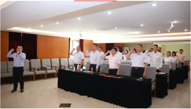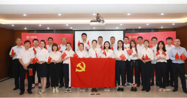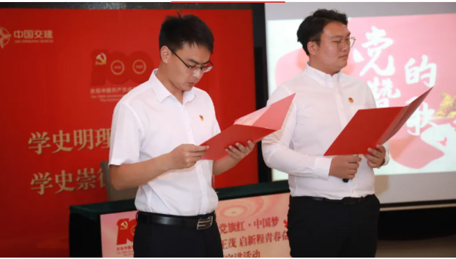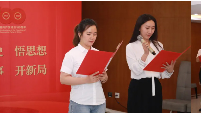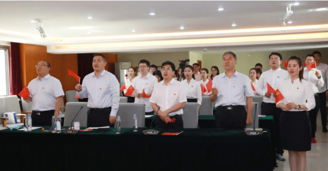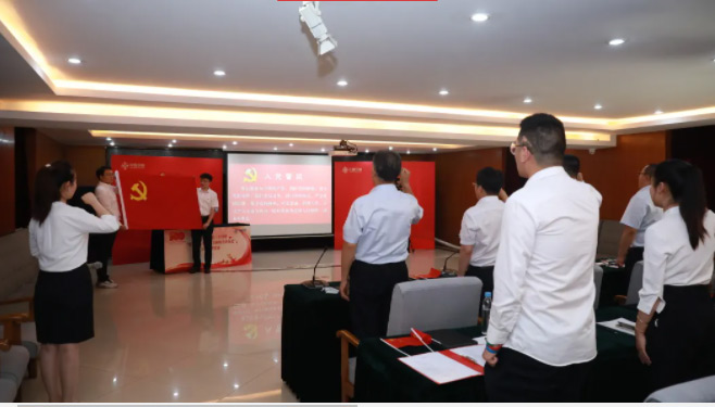 面对鲜红的党旗,由公司团委负责人领誓,全体党员再一次举起右拳,重温入党誓词,党员们用最质朴的仪式,表达对党的无限忠诚与崇高敬意。