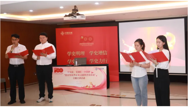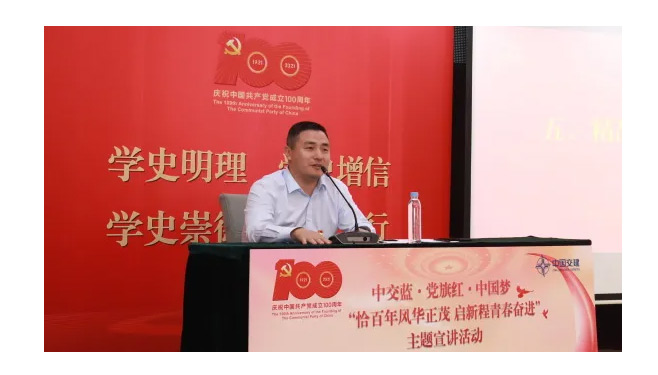 随后,大家共同观看了微视频《永葆初心:习近平讲述百年征程》,跟随习近平总书记的原声,一起回顾中国共产党百年奋斗征程。接着,在《信物百年》之《征战世界屋脊的罗盘》视频中,与会人员再次重温中交人心中永不熄灭的“两路精神”,领略逢山开路、遇水搭桥,踏平坎坷、砥砺前行的坚毅品质。